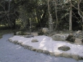 平成9年12月に完成した庭園です。 当山で一番新しいものです。自然石を配置し、樹木はつつじともみじのみで、白い御影石を全面におき、シンプルなイメージです。 中心のほとけさまは、「三界萬霊」の菩提を祈る阿弥陀如来です。 江戸時代後期の作で、参道(石段)の登り口にあったものを 移動しました。左の塔は同じく江戸時代後期の昨です。