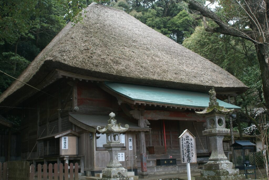 水堂の境内の中で中心となるお堂です。 宝永4年(西暦1707年)に建立されました。屋根は葦葺き(よしぶき)で、戸は昔ながらの鎧戸(※1)です。 出水法要(※2)中に、参拝された信徒の方々が、各家のご先祖様の回向をされます。また、受付にて塔婆(※3)供養や経木塔婆を申し込まれ、霊水堂へお供えされます。 ※1.鎧戸(よろいど)細長い薄い板を、透き間ができるように何枚も斜めに並べてとりつけた戸。日光の直射を防ぎ通風をよくする。 ※2.出水法要(でみずほうよう)毎年旧暦4月15日(寅の刻:午前4時)から7月15日(未の刻:午後2時)の夏安居(げあんご)の時期です。 ※3.塔婆(とうば)・仏舎利を安置し、供養するために建てる塔。・死者を弔うために墓のうしろに立てる、塔の形をかたどった薄くて細長い板。板塔婆イタトウバ。=卒塔婆ソトウバ。 中に入る